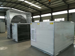 熱回收空氣處理機組是一種空氣與空氣進行顯熱/全熱交換的設備,當進入室內的室外新鮮空氣和排出室外的空氣逆向通過時,它會將排風中的能量(冷、熱量)充分的回收利用、使新風的空氣狀態(tài)點接近定內空氣參數(shù),從而降低新風處理時的能耗,達到節(jié)能的目的。同時,機組還可以根據(jù)不同的要求,設置相應的功能段,并通過風機的壓力配置,使其具備過濾、潔凈、消毒及保持室內正壓/負壓等功能。熱回收空氣處理機組常用的有板式熱回收和轉輪熱回收兩種形式,其中轉輪空氣處理機組適用于一般送風要求的空調場所,具有熱濕處理、排風節(jié)能的作用,可選用濕膜加濕器以滿足濕度要求結構形式為上下布置,具有功能簡潔、結松緊湊、節(jié)省空間等特點。