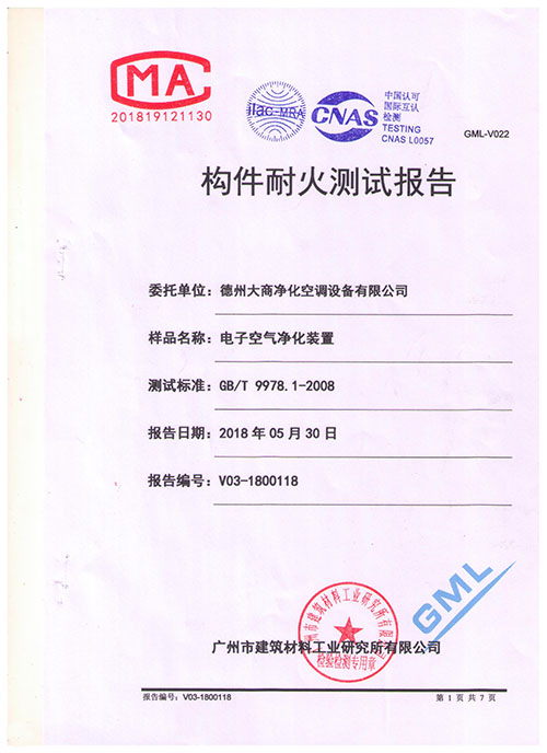 2018年5月,大商研發(fā)生產(chǎn)的中央空調(diào)電子空氣凈化器順利通過廣州市建筑材料工業(yè)研究所有限公司產(chǎn)品構(gòu)件耐火測(cè)試,并取得相應(yīng)產(chǎn)品合格測(cè)試報(bào)告。 大商研發(fā)生產(chǎn)的中央空調(diào)電子空氣凈化器(高壓靜電除塵器),其作用是消除中央空調(diào)系統(tǒng)中顆粒物、微生物、細(xì)菌病毒等對(duì)空氣質(zhì)量有影響的污染物。由于空調(diào)箱及風(fēng)機(jī)盤管中的換熱器多在濕工況下工作的,會(huì)使入空調(diào)風(fēng)機(jī)盤管的微生物緊緊的附在換熱器表面和集水盤中。濕度適宜時(shí)微生物大量繁殖,當(dāng)機(jī)組再次啟動(dòng)時(shí),微生物繁殖生存的大量氣體、以及細(xì)菌、病毒在空氣中散發(fā)成氣溶膠,便隨氣流通過管道進(jìn)入室內(nèi),使室內(nèi)空氣品質(zhì)惡化。安裝方式:有風(fēng)管式、風(fēng)盤式、風(fēng)口式三種。