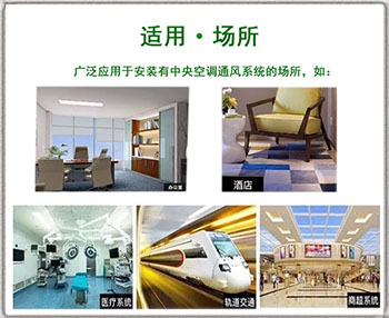 夏季是使用空調頻率好高的季節(jié),再加上空氣溫度高,濕度大,好適宜細菌和病毒的滋生,空氣中對人好有害的塵埃是小于10微米的塵埃,它們可以進入人體的細胞,導致各種疾病,尤其空氣中的鉛、鎘等重金屬,很容易致癌。中央空調風口的末端設置空氣凈化消毒裝置可有效去除空氣中的氨、苯、甲醛、細菌病毒等污染物,去除空氣中的灰塵,并可保護空調系統的表冷系統免受顆粒物污染,使其保持高效的熱轉換率,從而達到節(jié)能的效果。